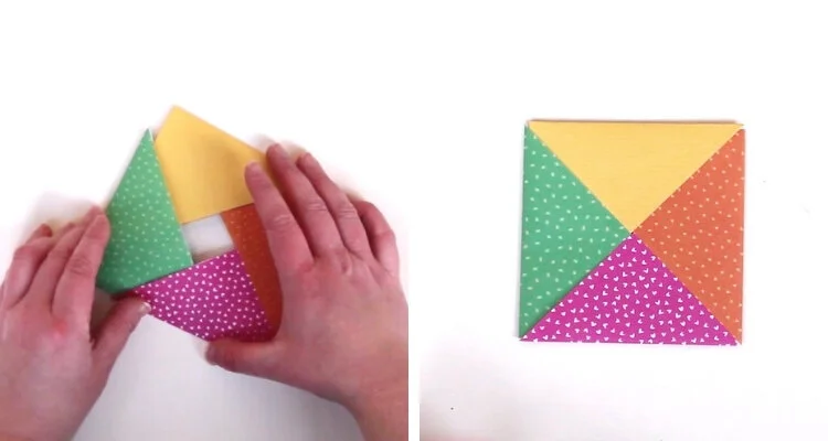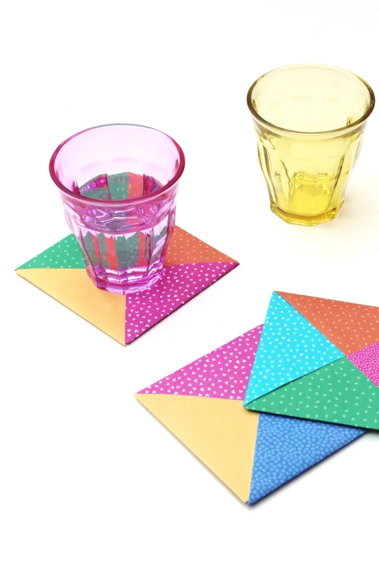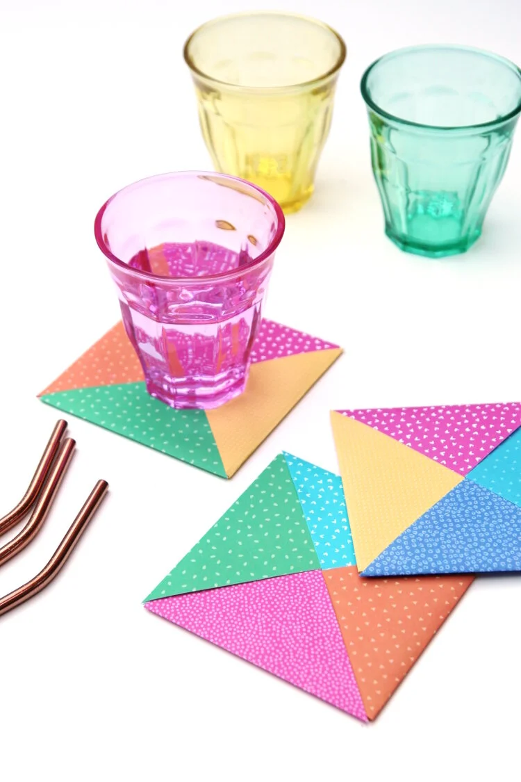 /Looking for an easy way to add a splash of colour to a picnic or outside gathering? Then you’re going to love these quick DIY paper coasters. They’re a simple origami craft you can make in minutes.