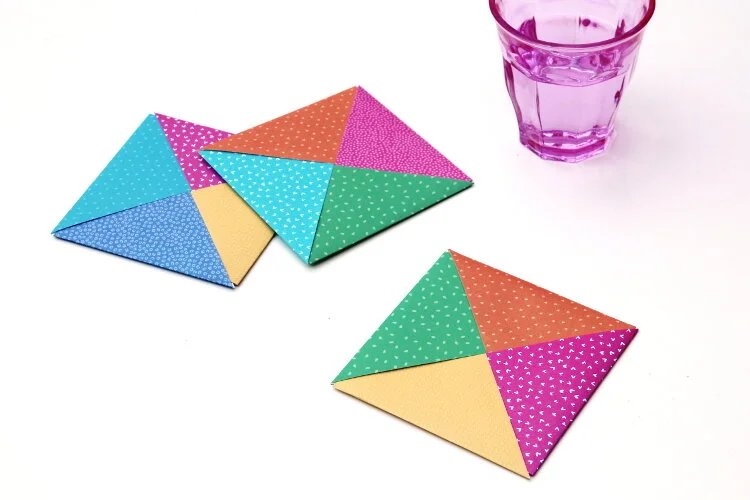 They’re great for beginners and also make fantastic gifts. All you need are 4 squares of paper and a few folds to make a beautiful set of handmade origami coasters.