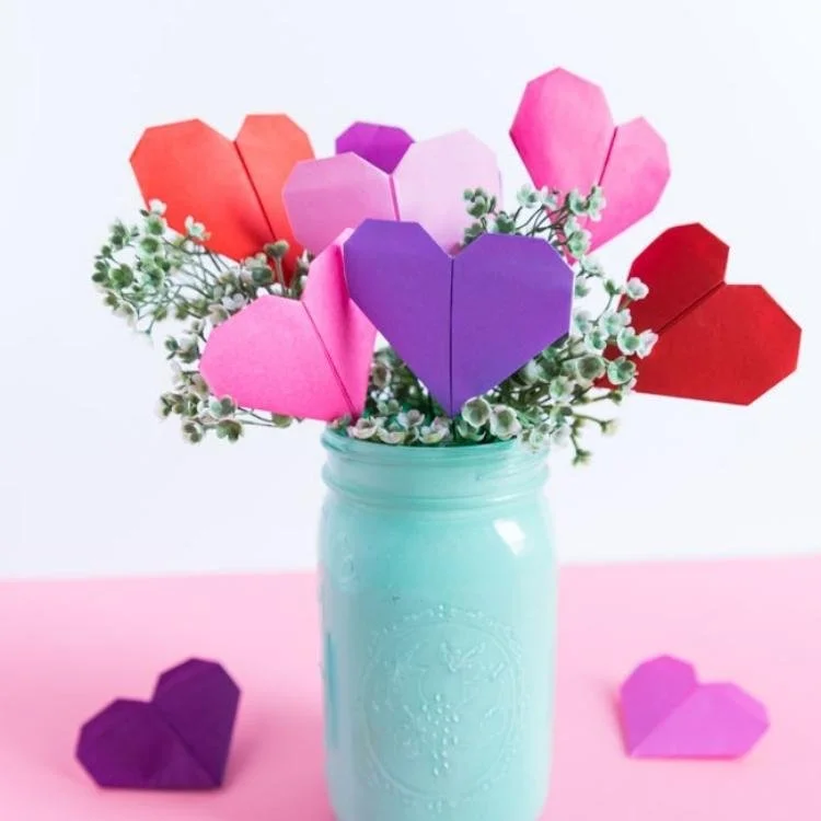 Simple Origami Heart Flower Bouquet