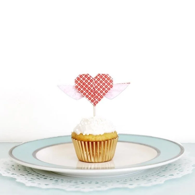 Origami Winged Heart Cupcake Toppers