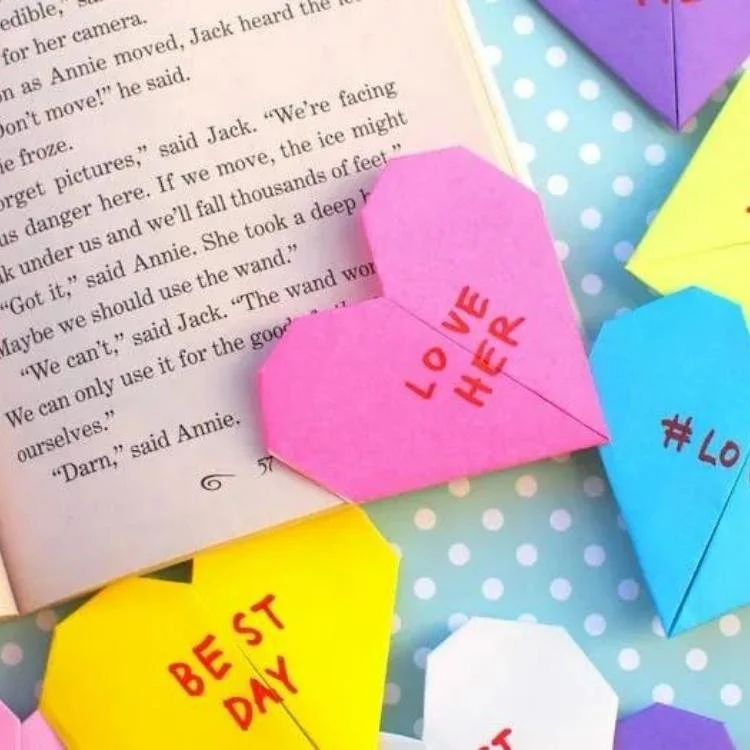 Short on time? Don't panic. Here’s a cute origami heart bookmark you can whip up in a couple of minutes.