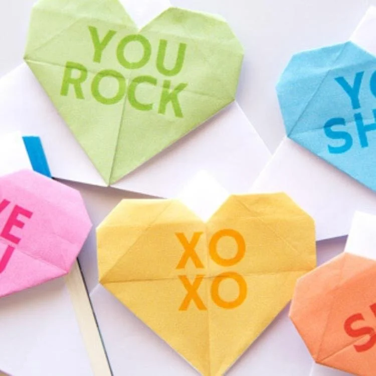 Send a sweet note folded into a simple origami heart. The perfect way to say I love you!