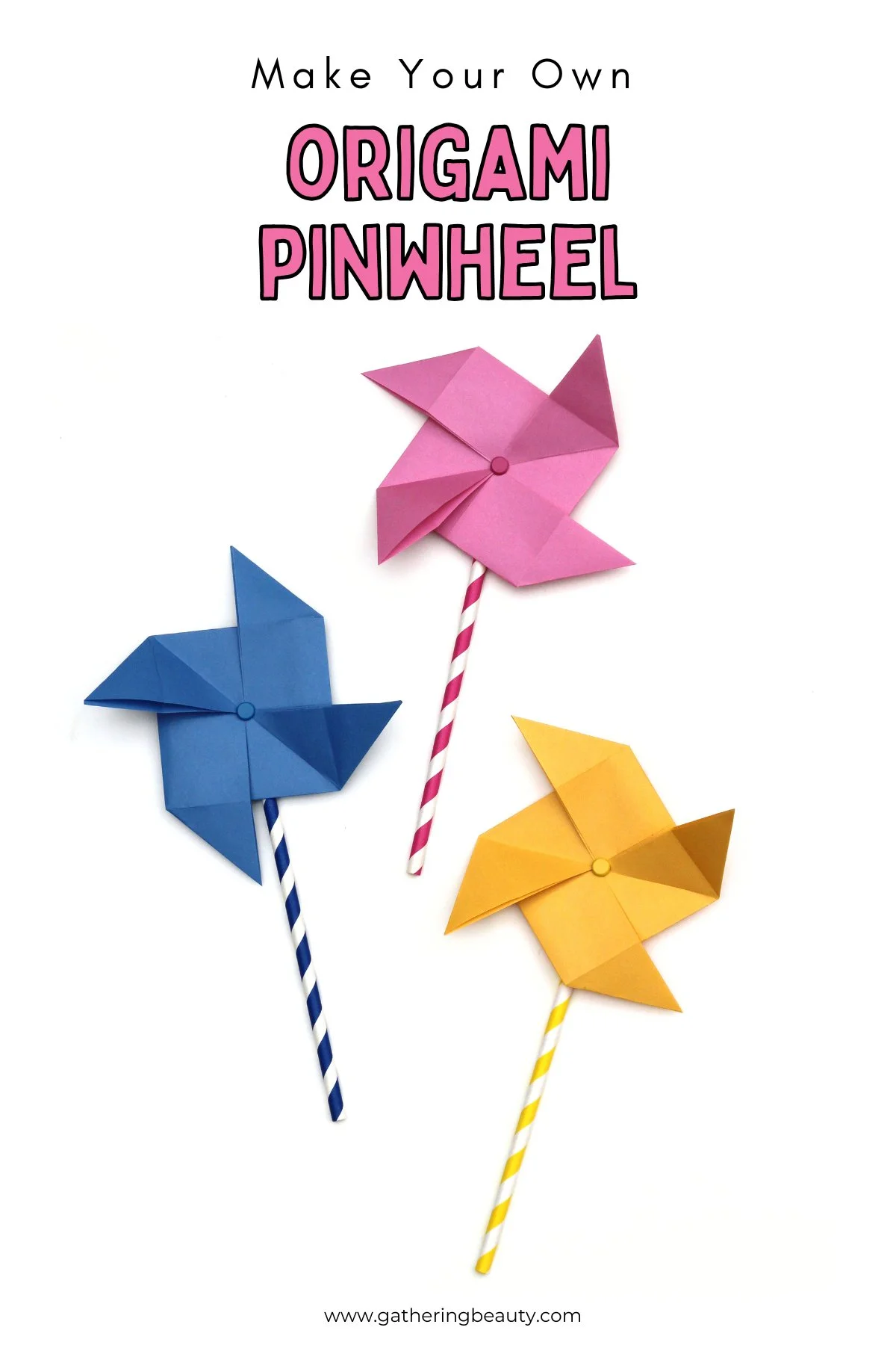 /Create cheerful Origami Paper Pinwheels in just minutes! Great for kids’ crafts, party decorations or summer fun.