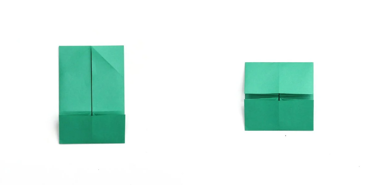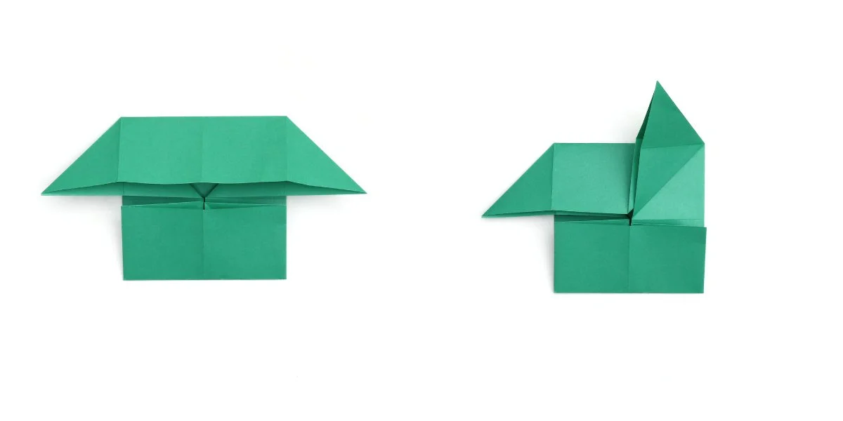 6. Pull open the left section and bring the right edge diagonally outwards to meet the central horizontal crease.