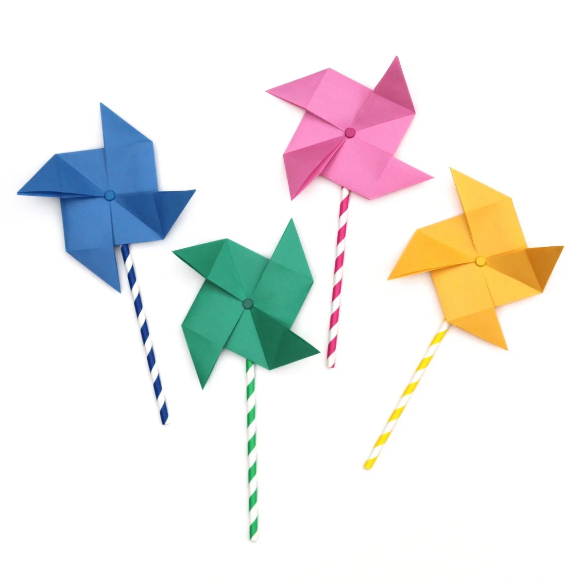 Origami pinwheels are perfect for decorating spring parties and kids' rooms. You can use them as cheerful party favours, string them into garlands or attach them to gifts for a playful handmade touch.