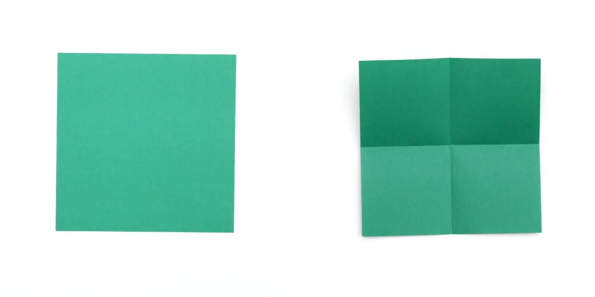 2. Fold the square in half horizontally and vertically. Unfold completely.
