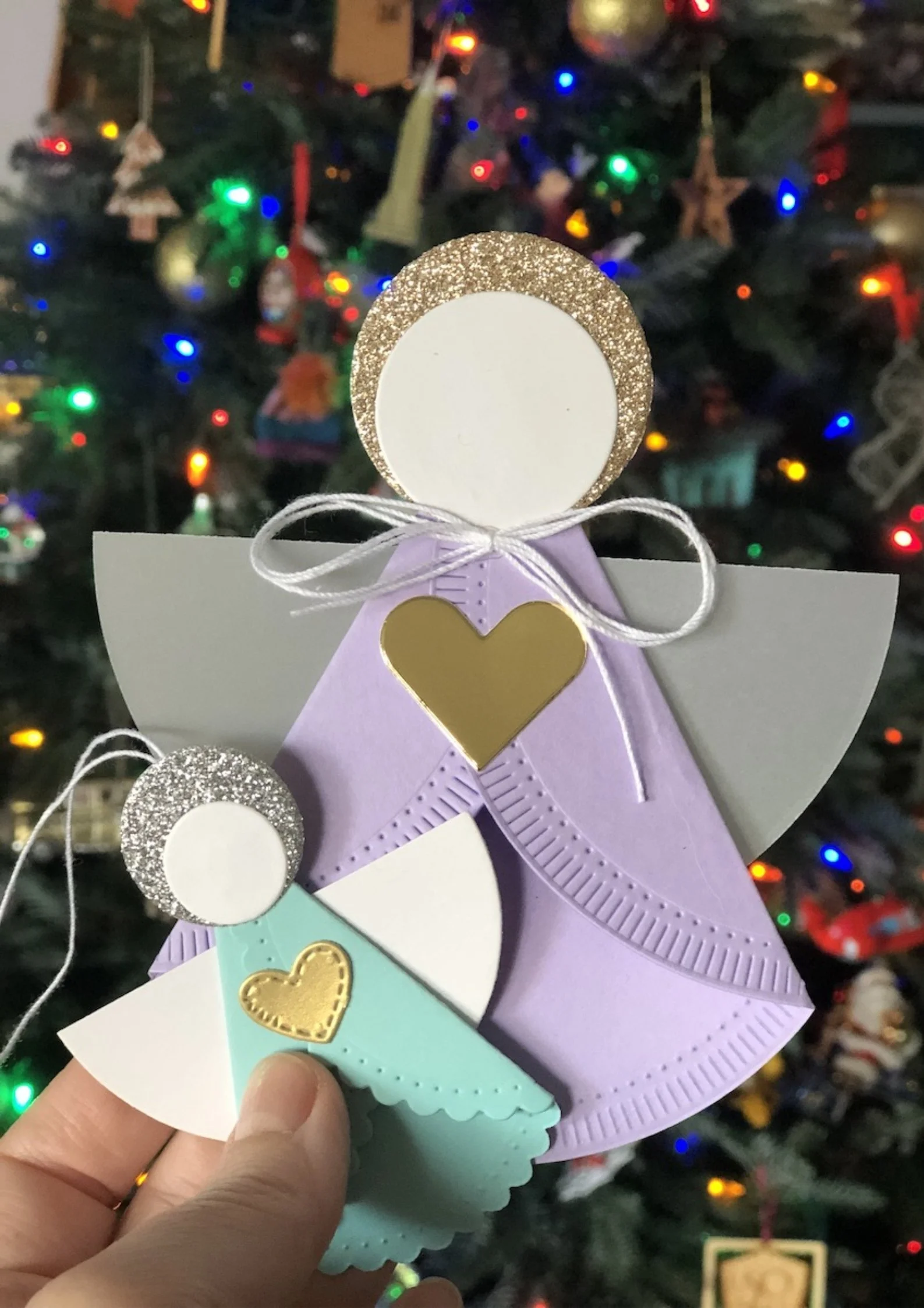 These make a great Christmas craft to decorate the Christmas tree with. Or you can make a little angel garland or add them to Christmas Greeting Cards!