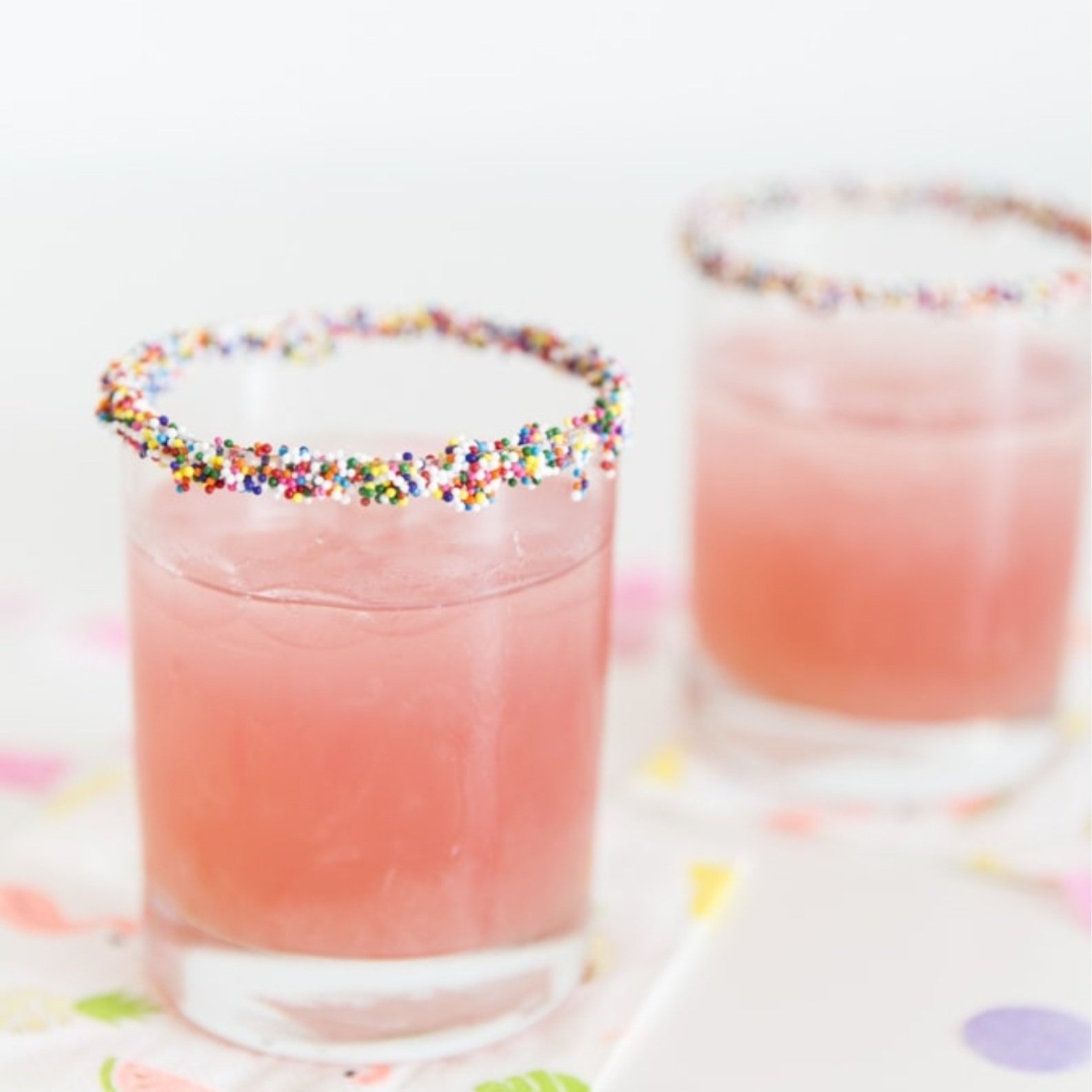 In a birthday bind? Look no further than this pink drink recipe decked out with a rim dipped in sprinkles!! Sprinkles make everything better, right?!