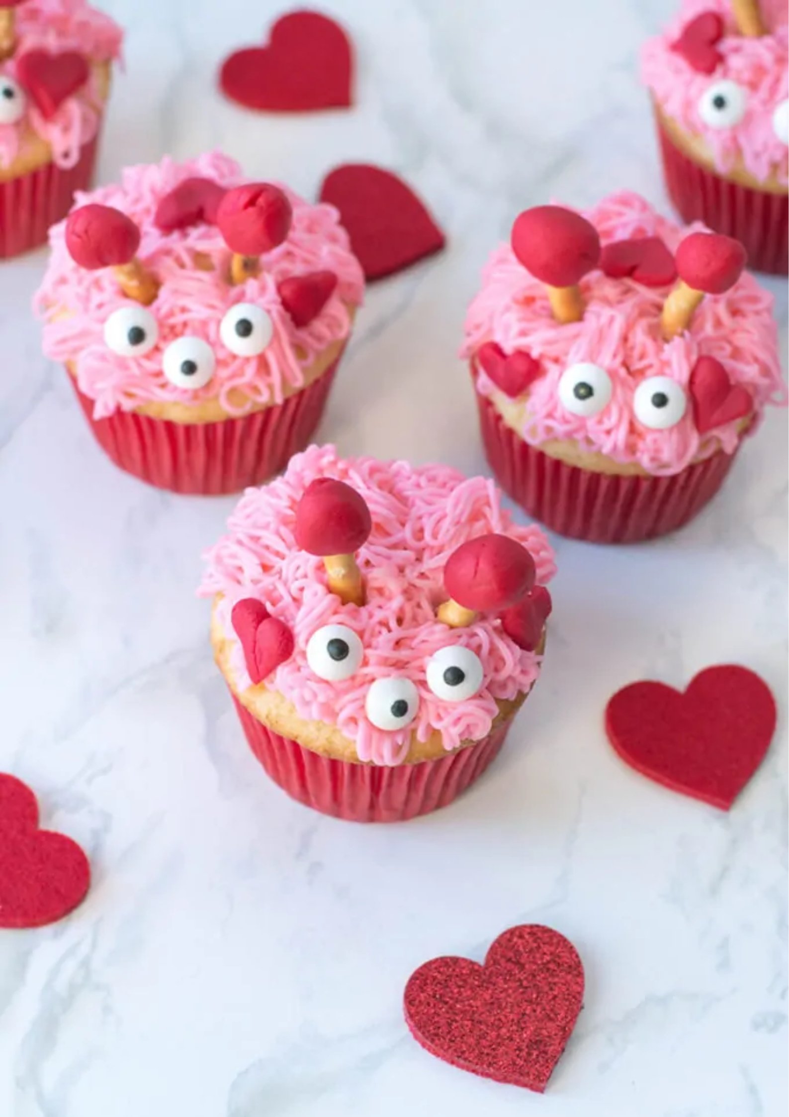 Furry Monster Valentines Cupcakes
