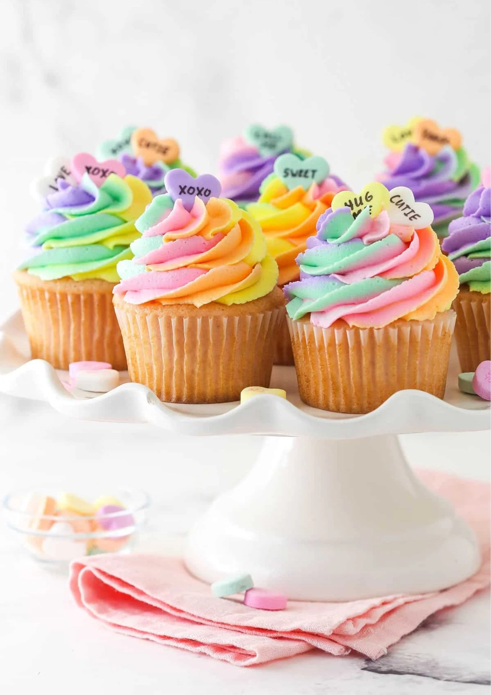 Yellow Cupcakes with Vanilla Buttercream and DIY Candy Heart Toppers