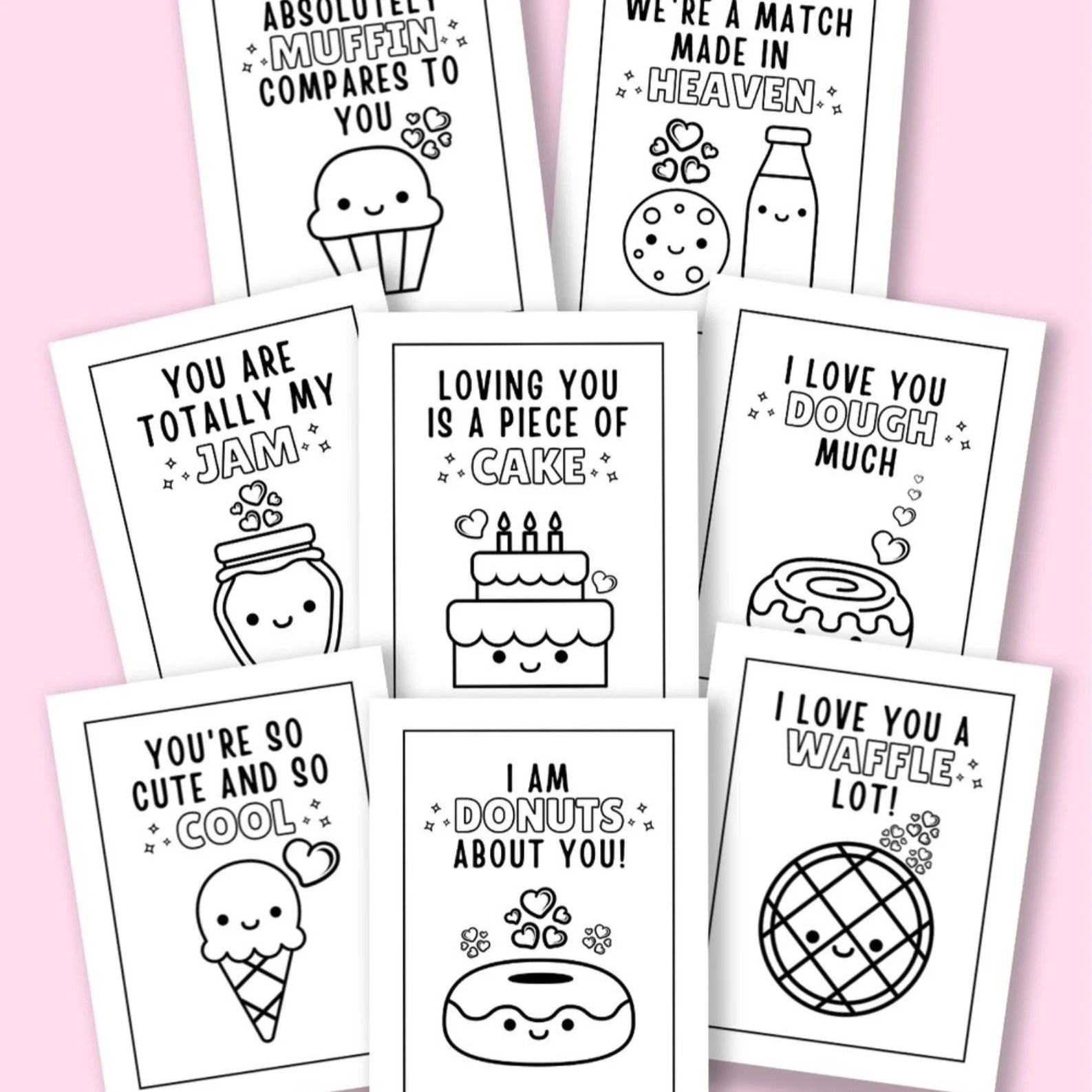 If you’re looking for a cute Valentine's card idea you’re going to love these pun-tastic sweet treat cards. Adorable kawaii-inspired printable cards for you to print and colour. They're perfect to give out to friends, family and classmates.
