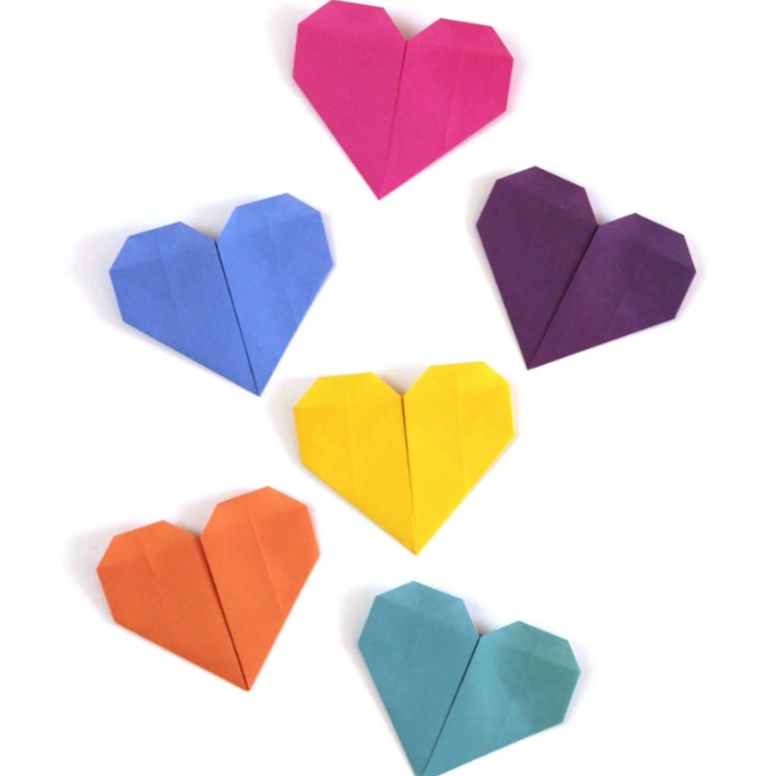 Folded Paper Hearts - grab some construction paper and make a whole bunch of rainbow hearts in different colors.