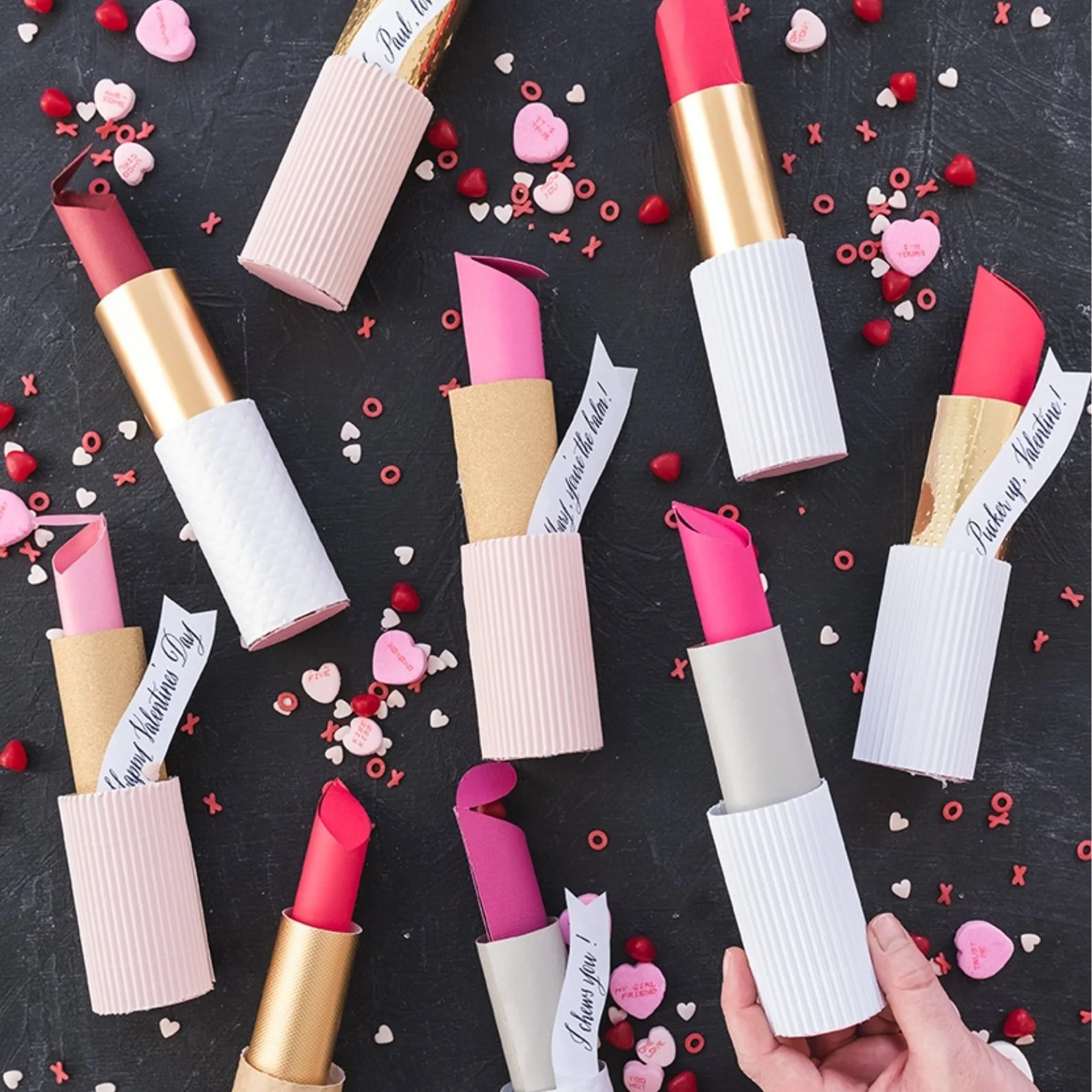 These luxurious tubes are filled with sweet candies and made from a toilet paper roll! Talk about trash to treasure, right? So even if you’re not quite ready to flaunt the red lip, these Lipstick Valentines are the perfect shade for everyone!