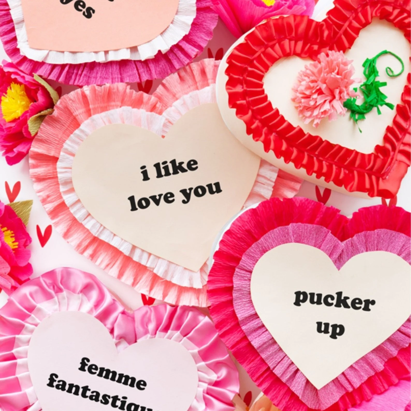 Adorned with frilly ribbon, crepe paper and cute sayings, these would make a perfect chocolate-filled gift for a Galentine or two!